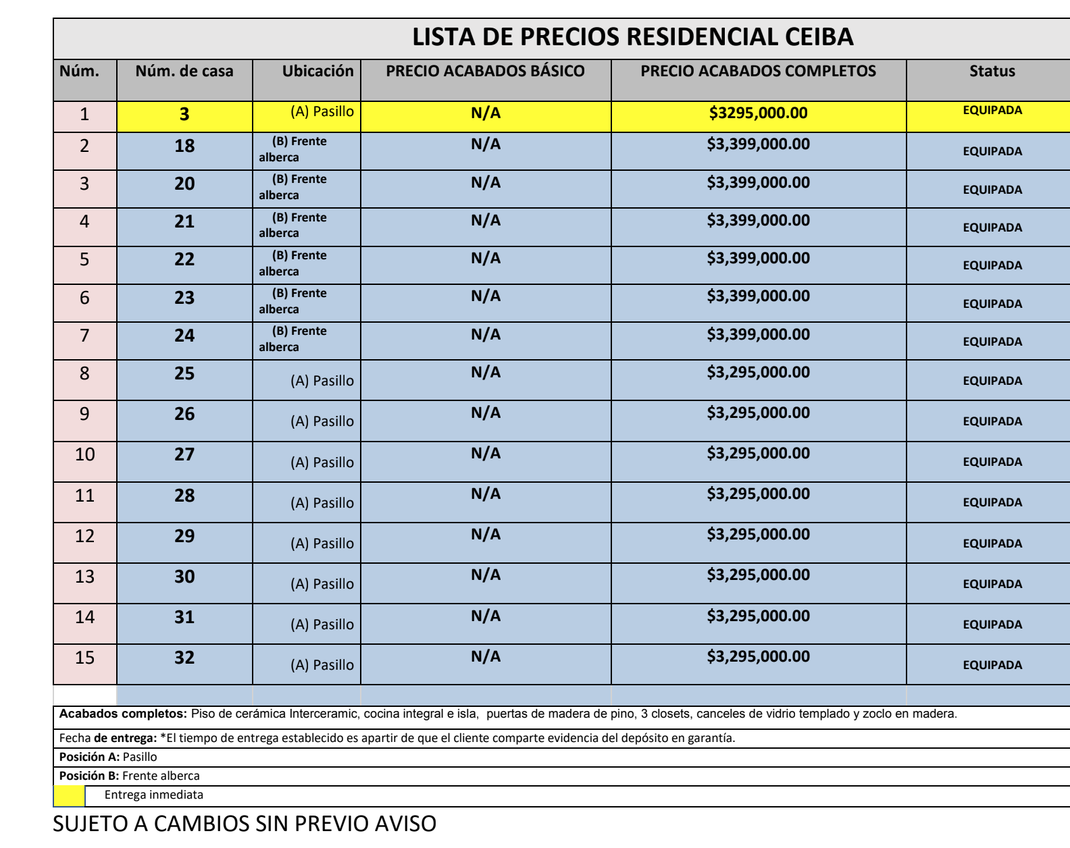 *Acabados básicos: piso de cerámica Interceramic, tarja y puertas de madera de pino