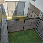 Fachada con ventanal a doble altura recubierta de bambú que permite una iluminación natural y un confort térmico.